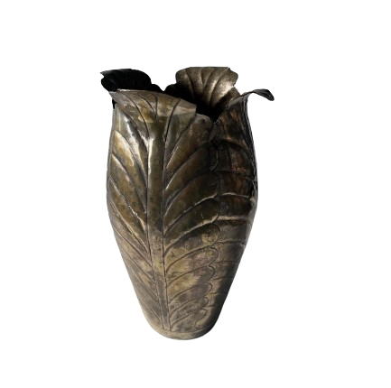 Vase à fleurs en métal fait main, style feuille tendance, finition antique, pour salon, sur mesure.