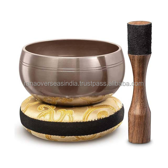 Ensemble de bols chantants en laiton tibétain faits à la main avec coussin de luxe et maillet inclus, parfait pour les besoins de guérison et de méditation