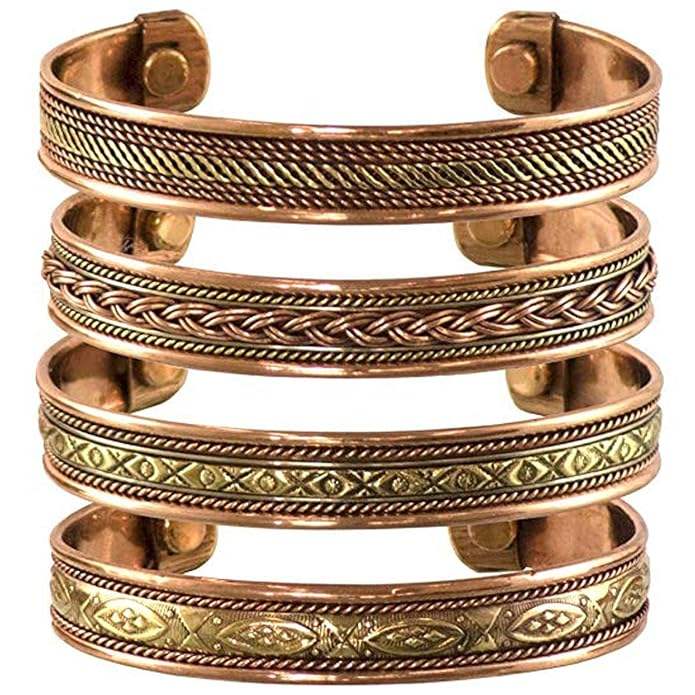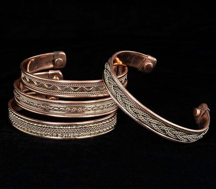 Ensemble de bracelets en cuivre de style vintage tibétain faits à la main, 4 pièces, réglables, bijoux fins en fil, cuivre magnétique pur, bracelet manchette
