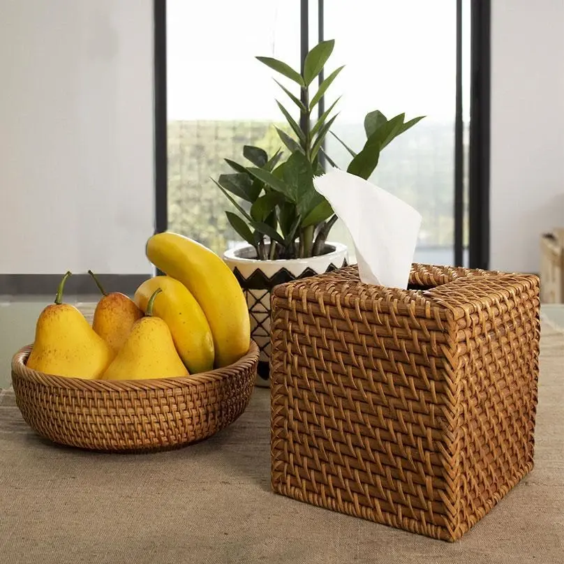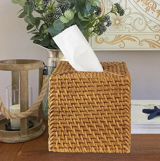 Boîte à mouchoirs artisanale en rotin naturel, fournisseur de rangement et de décoration intérieure, design léger et durable en provenance du Vietnam