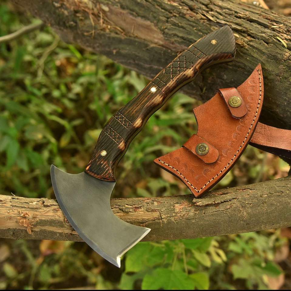 Tomahawk artisanal, manche en bois de frêne sculpté, lame pleine longueur, étui en cuir, pour la sculpture et la sculpture sur bois