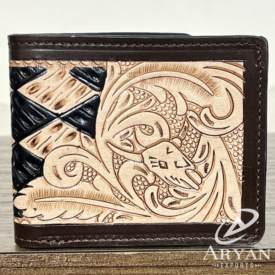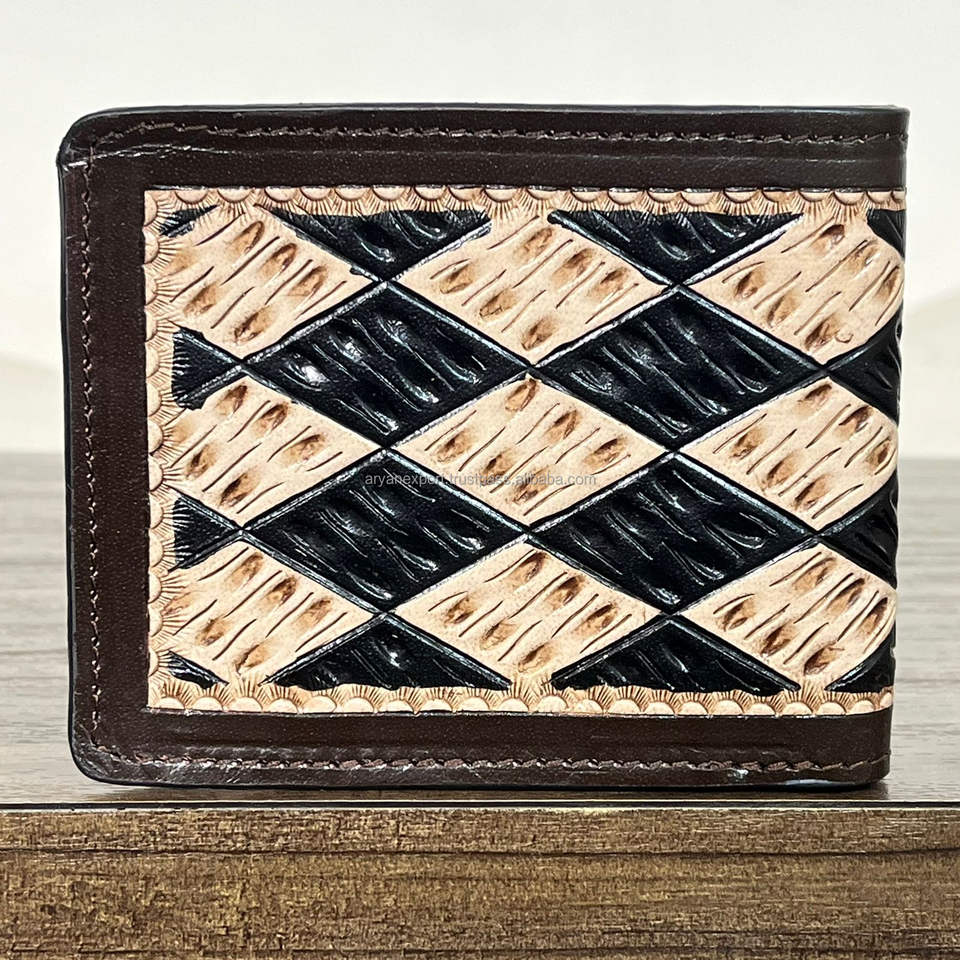 Product Name:Hand Tooled Leather Checkered Men's Bifold Wallet