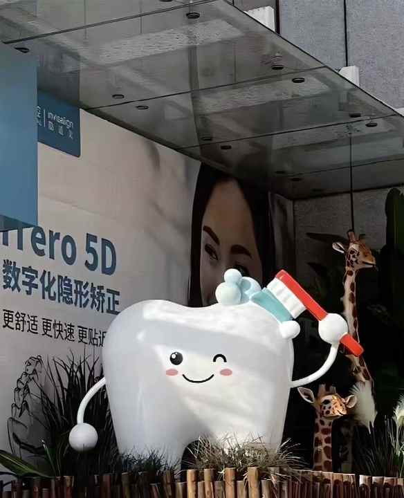 Sculpture dentaire artisanale de style dessin animé, statues de brosses à dents grandeur nature pour la décoration de l'entrée du hall d'hôpital, du bureau