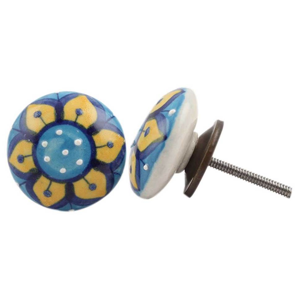 Boutons de tiroir en céramique bleue faits à la main en forme de tournesol, poignées de porte d'armoire de cuisine, quincaillerie en gros