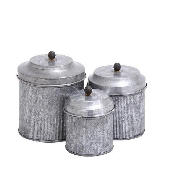 Ensemble d'accessoires de récipient de forme ronde galvanisés faits à la main les plus vendus pour la cuisine à domicile pour usage alimentaire