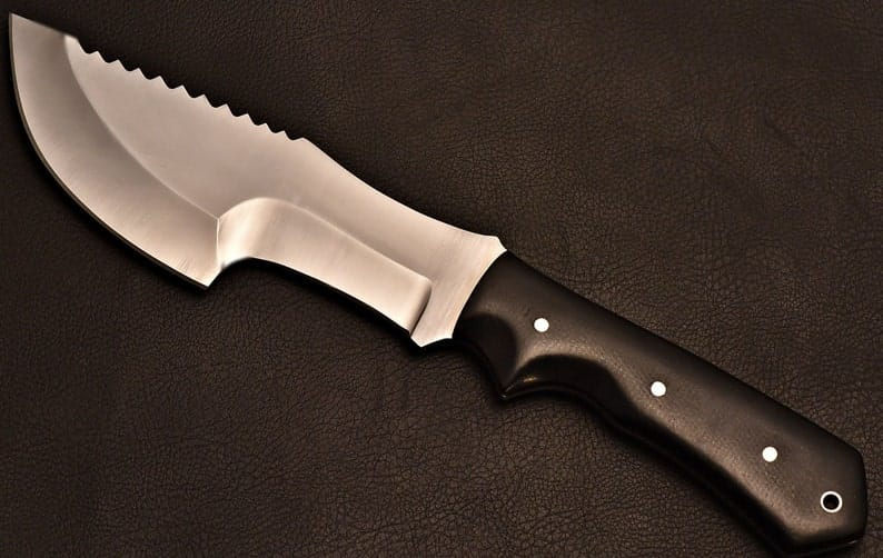 Couteau Bowie Tracker personnalisable fait main en acier inoxydable, à lame fixe dentelée, pointe clip, qualité industrielle, pour droitier, OEM