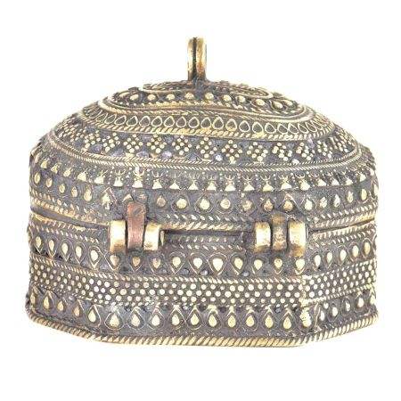 Boîte à bijoux ou boîte à bibelots en laiton tribal antique de couleur traditionnelle faite à la main, emballage de bijoux en gros