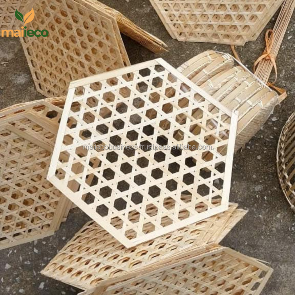Napperons de table traditionnels en bambou faits à la main décor de fleurs murales multi-usages servant des aliments chauffés artisanat jetable écologique