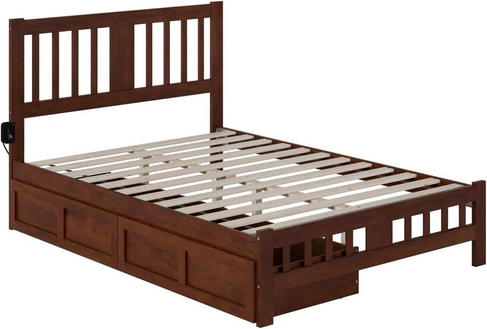 Lit à panneaux en bois de noyer au design traditionnel fait à la main pleine grandeur avec marchepied et 2 tiroirs pour usage domestique