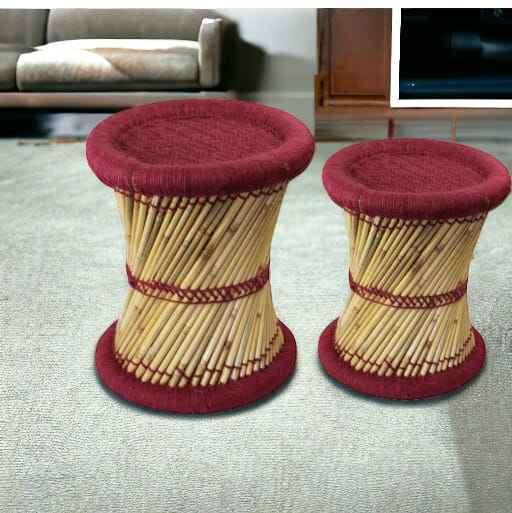 Tabouret en bambou traditionnel indien fait à la main Mudda rouge pour manger en plein air hôtel parc Antique Design Style os incrustation Console