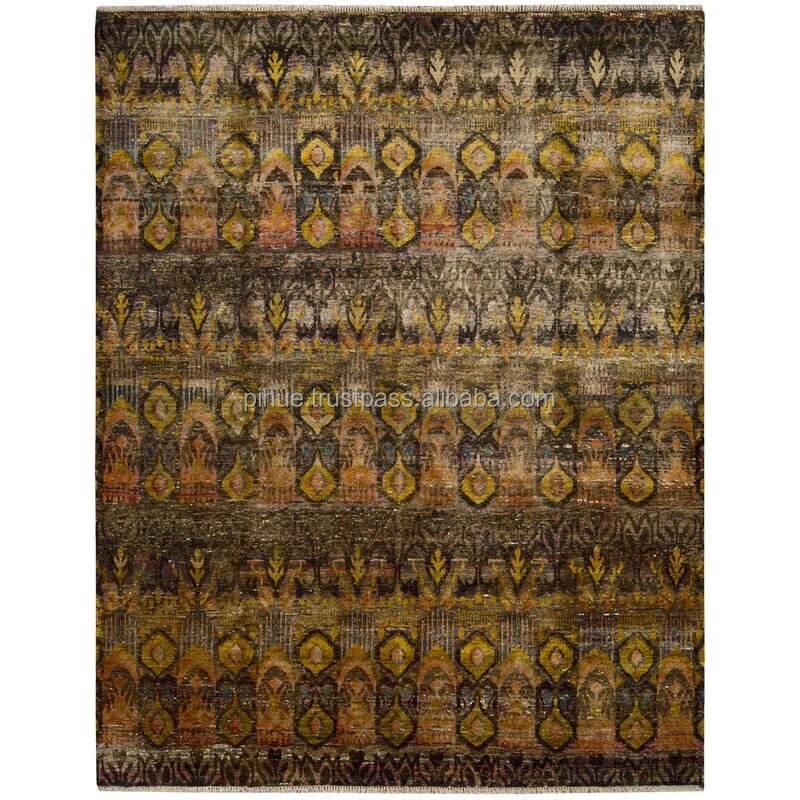 Tapis Ikat indiens traditionnels faits à la main tapis tuftés en soie de taille personnalisée conception nouée à la main pour la cuisine ou la chambre à faible coût