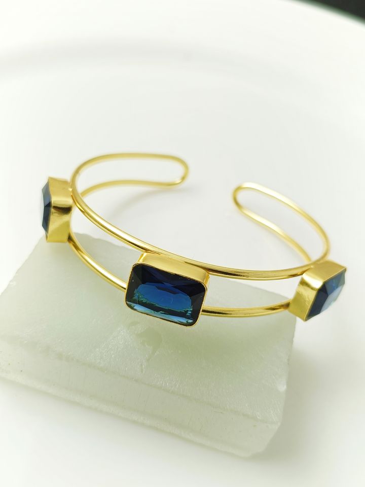 Bague de Style traditionnel fait à la main topaze bleue Quartz pierres précieuses magnifiques bijoux en métal en laiton plaqué or meilleur prix bracelets de mode