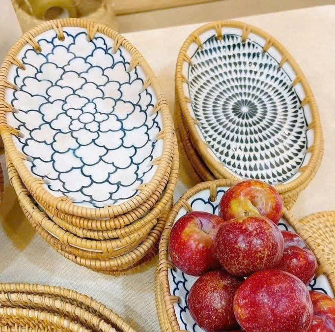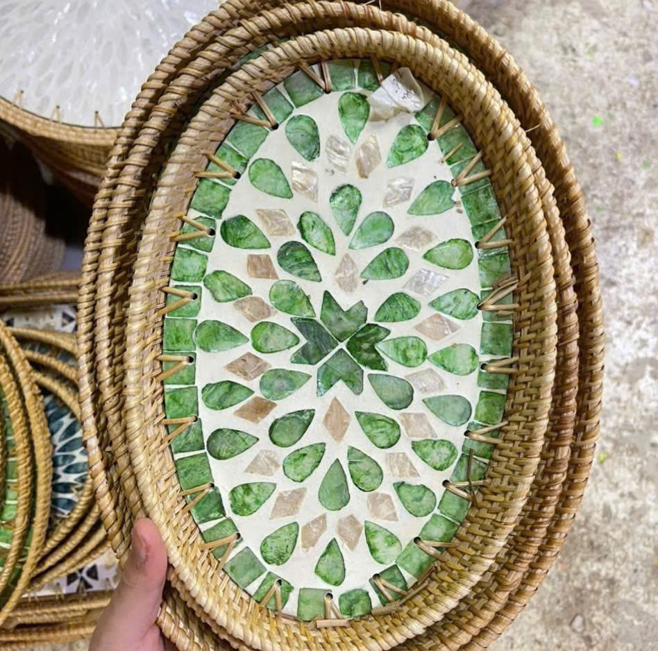 Plateaux Faits à la Main en Rotin Peint Laque Nacre Plateau du Viet Nam