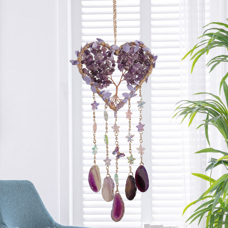 Pendentif en cristal d'agate d'arbre de vie fait à la main modèle de pierre de bricolage pour cadeau d'affaires ou personnel pour la Saint-Valentin