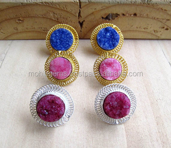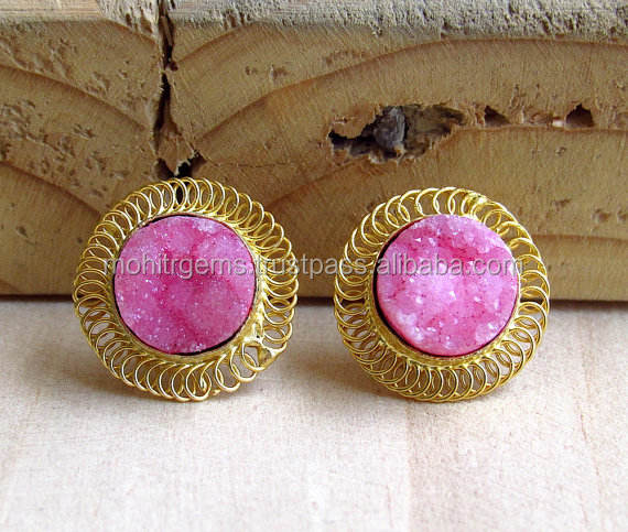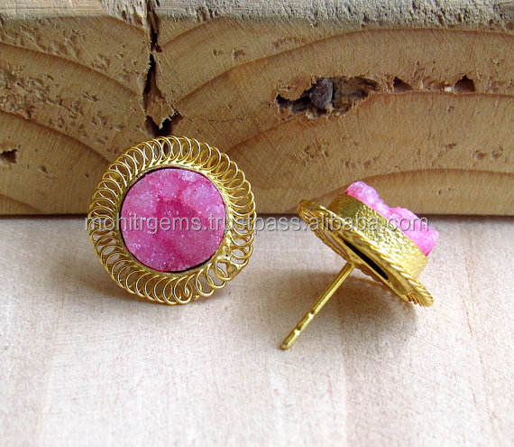Boucles d'oreilles clous tendance faites à la main en acier inoxydable plaqué or avec agate sucrée taille princesse, style crochet, pour femme, occasions spéciales et anniversaires