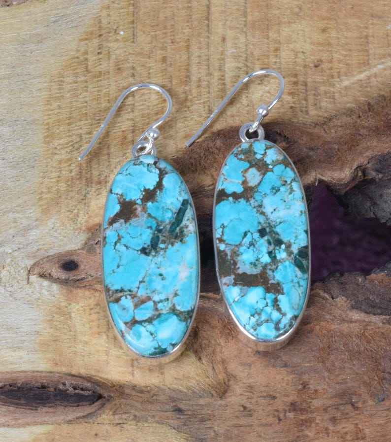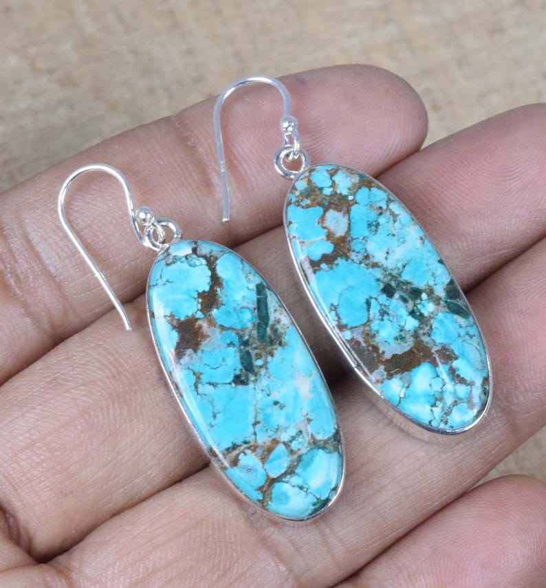 Handmade Turquoise Oval Drop Earrings 925 Sterling Silver Gold Plated Trendy Women's Jewelry December Birthstone Christmas Gift