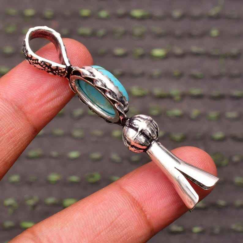 Pendentif artisanal en argent sterling avec turquoise, bijou de luxe ovale en pierre précieuse turquoise, cadeau pour femme, anniversaire