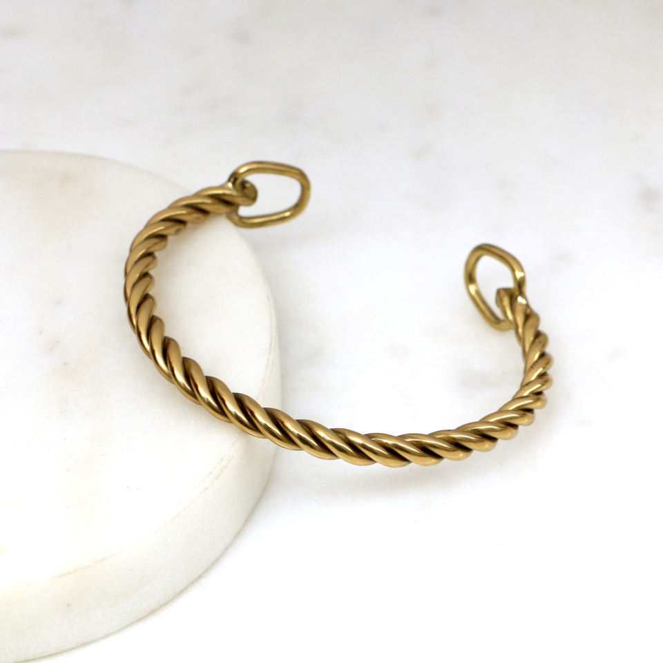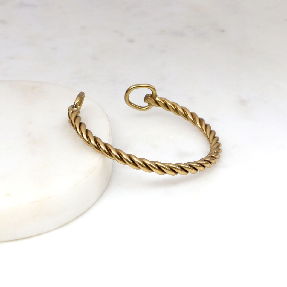 Handmade Twisted Brass Rope Cuff Bracelet - Vintage Style Minimalist Open Bangle - Rustic Gold Boho Stacking Jewelry
