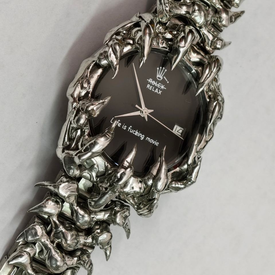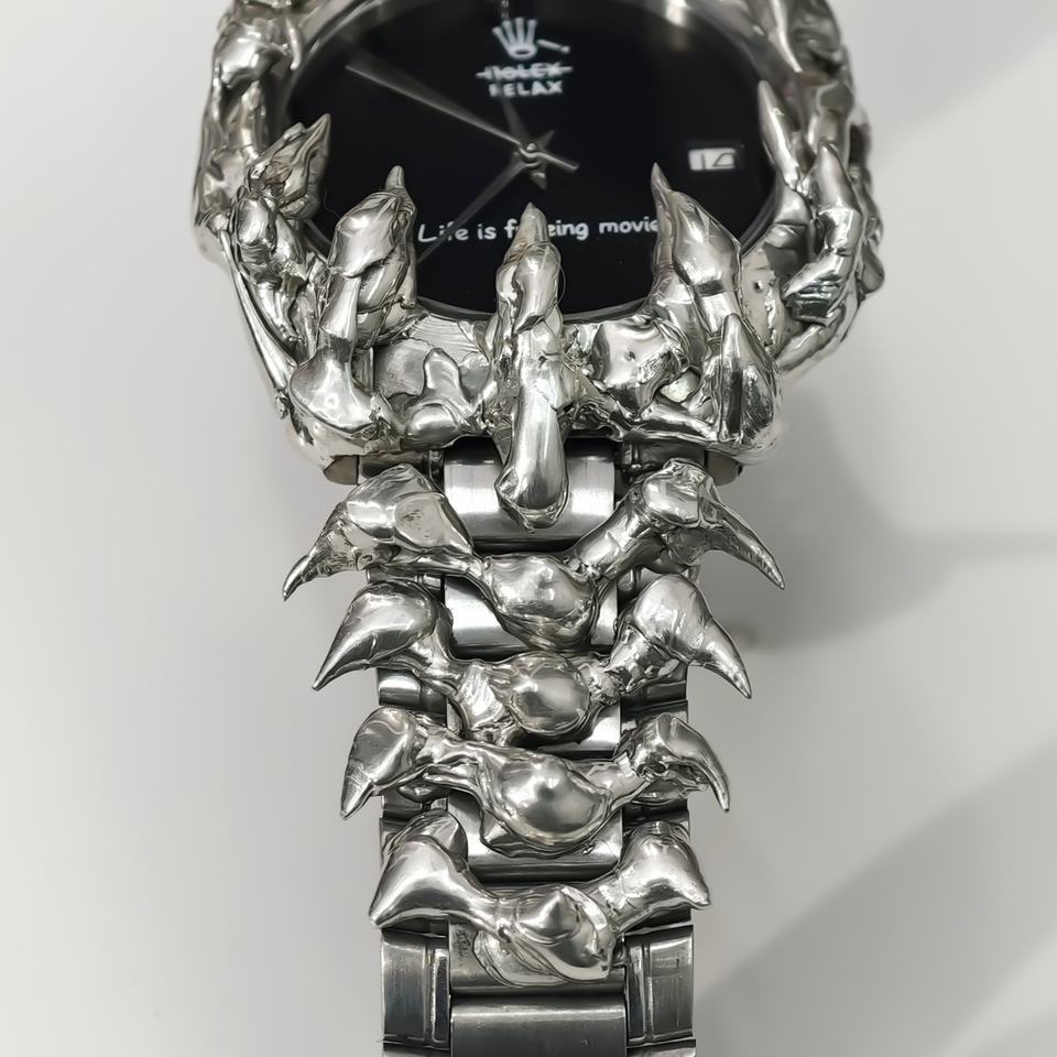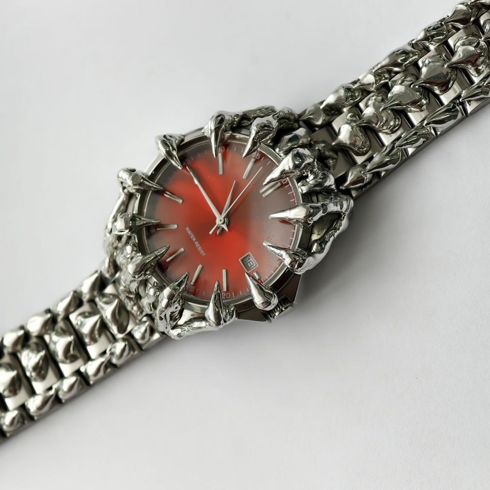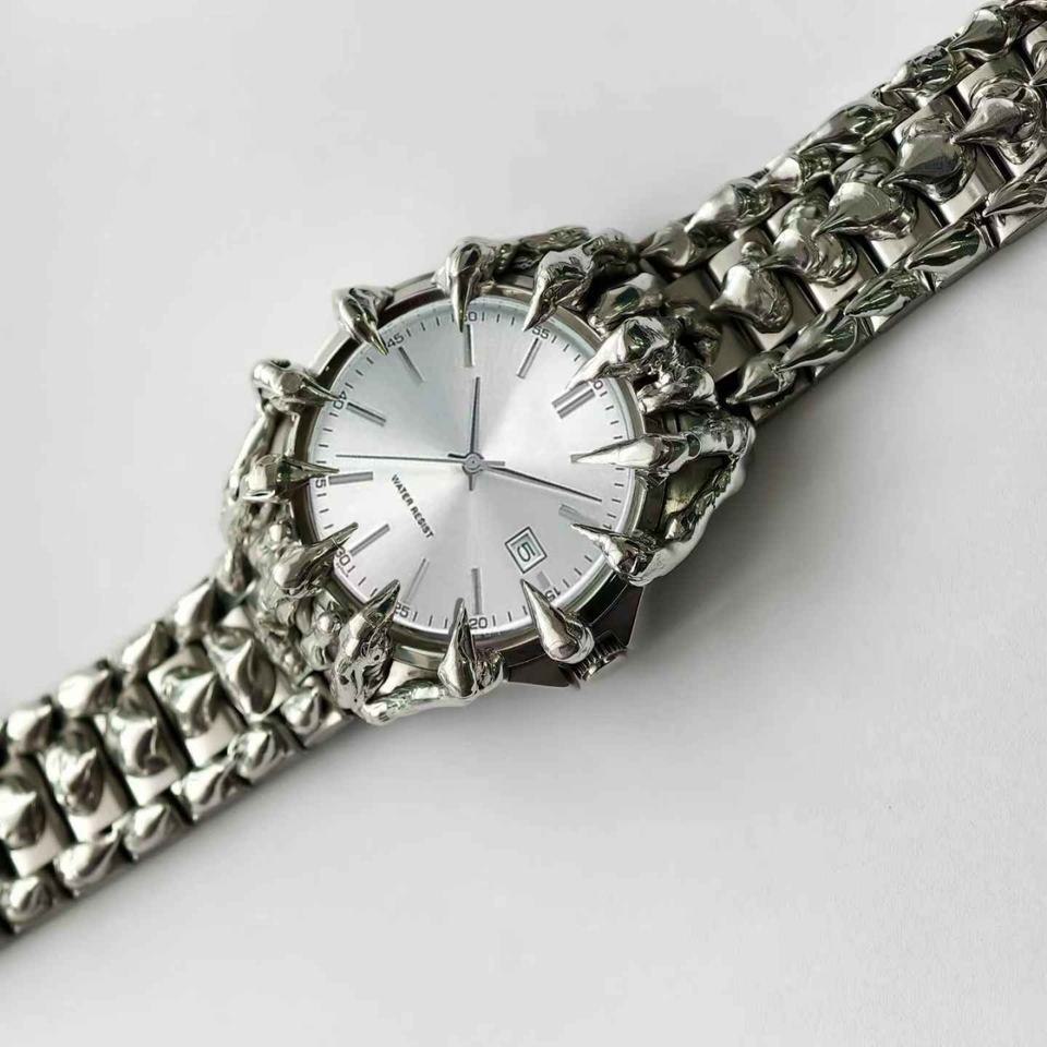 Montre à cadran arabe unique faite à la main, montre à quartz avec breloque griffe, montres vintage soudées, montres gothiques en acier inoxydable pour hommes, montres en albâtre