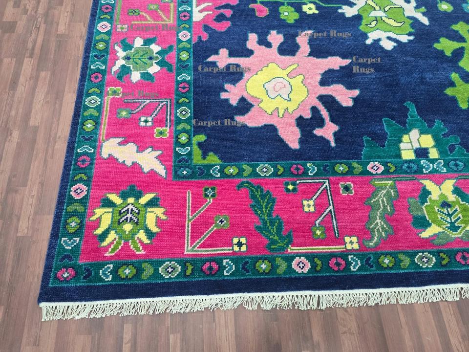 Handmade Uzbek Suzani Rug 8x10 - Navy Blue & Pink Wool Carpet, Colorful Bohemian Area Rug persian wool carpet sets