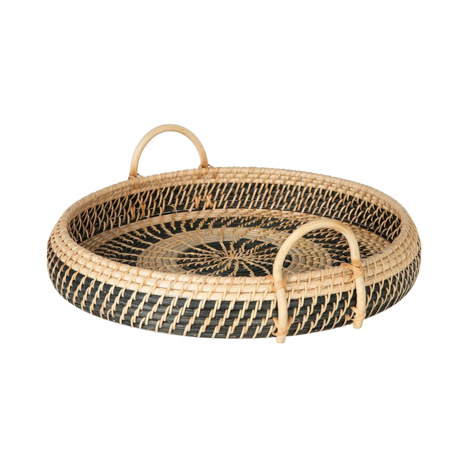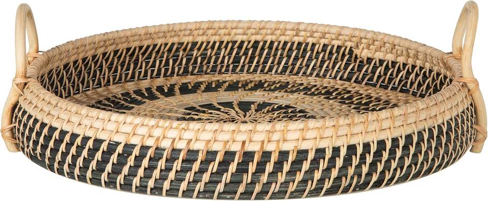 Poignées de plateau en rotin vietnamien faites à la main nouveau plateau de service ODM/OEM en forme de style écologique pour fruits légumes manuel