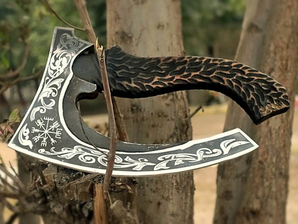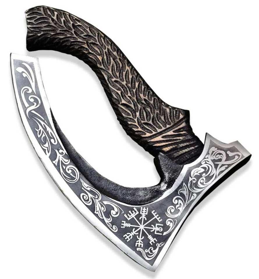Coupe-pizza Viking fait main Hache barbu Trancheuse à pizza avec lame en acier au carbone pour le camping et la cuisine pour les amateurs de pizza