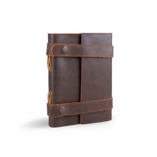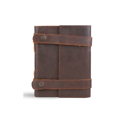 product name:Vintage Dark Brown Leather Journal With Double Strap Closure