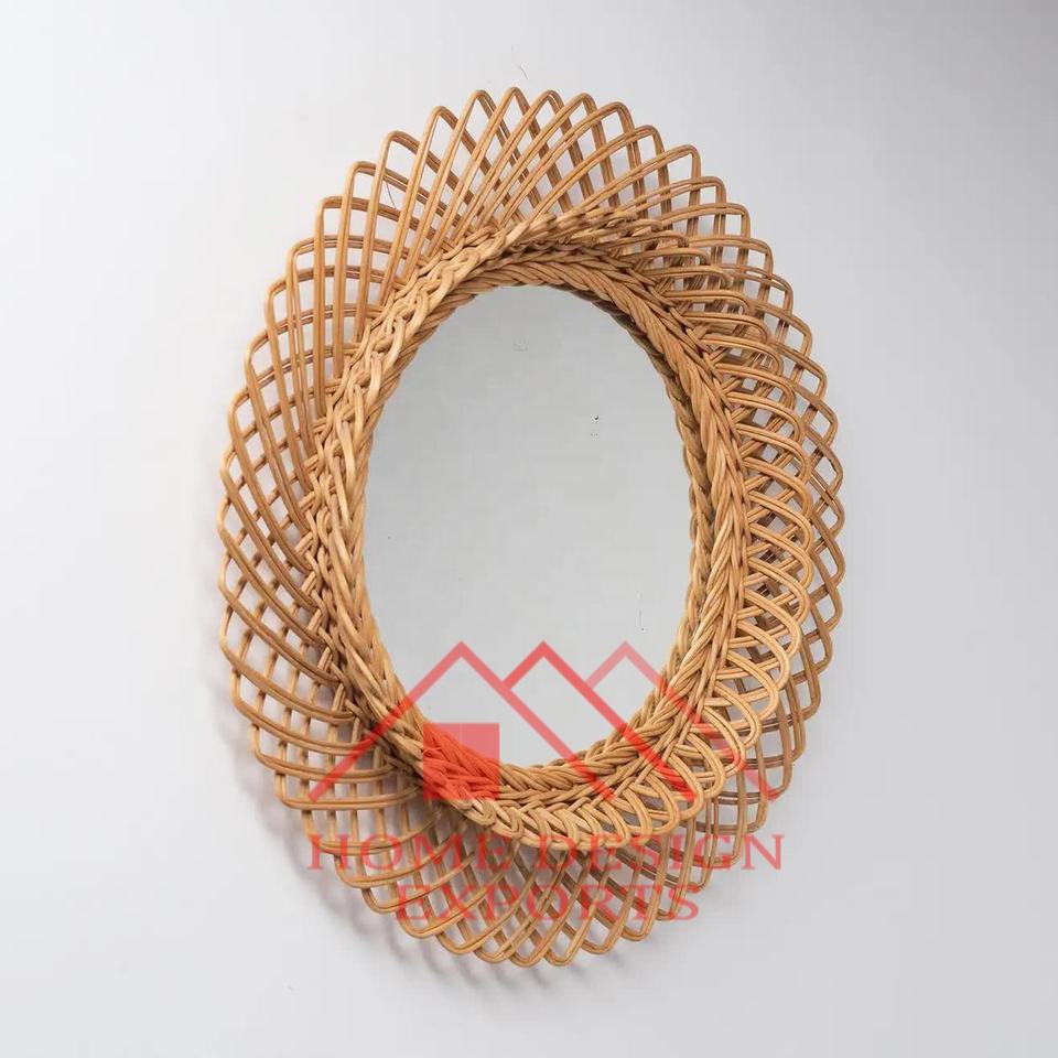 Miroir mural rond en rotin de conception vintage fait à la main, décoration de table pour hôtels et restaurants, grand miroir mural