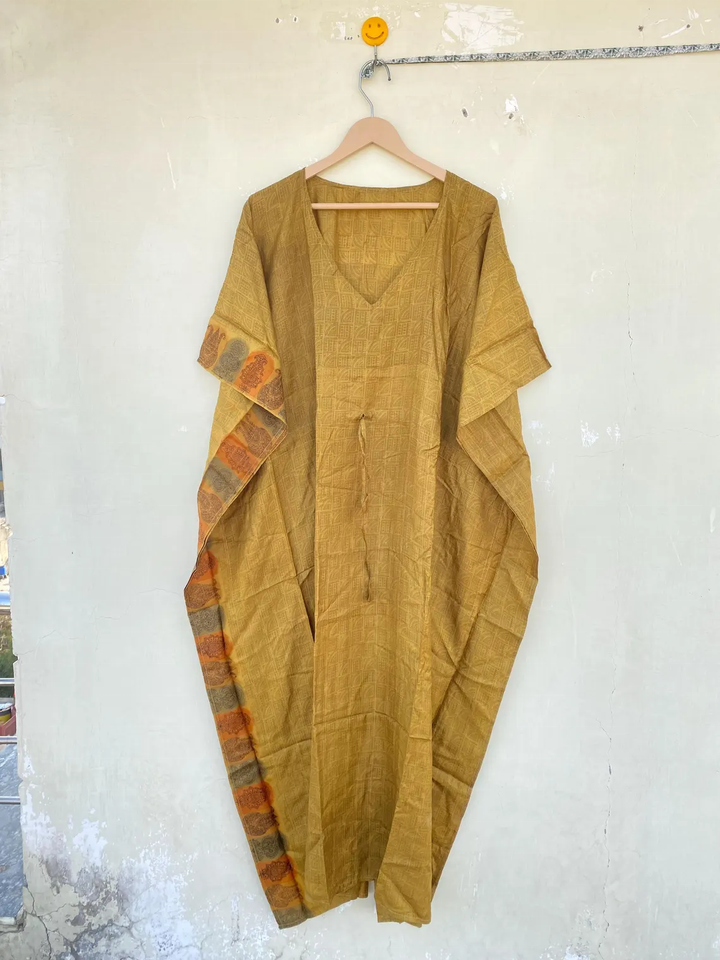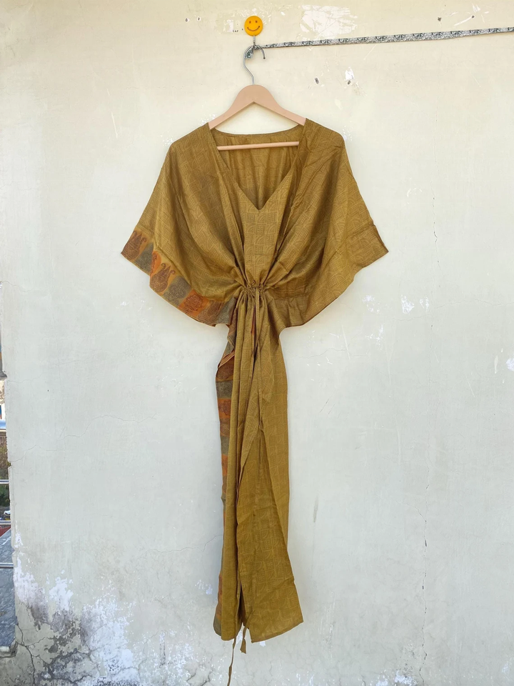 Fait à la main Vintage vert 100% soie Sari caftan pour femmes taille libre nouveau Vintage recyclé lisse pour la vie quotidienne été automne printemps