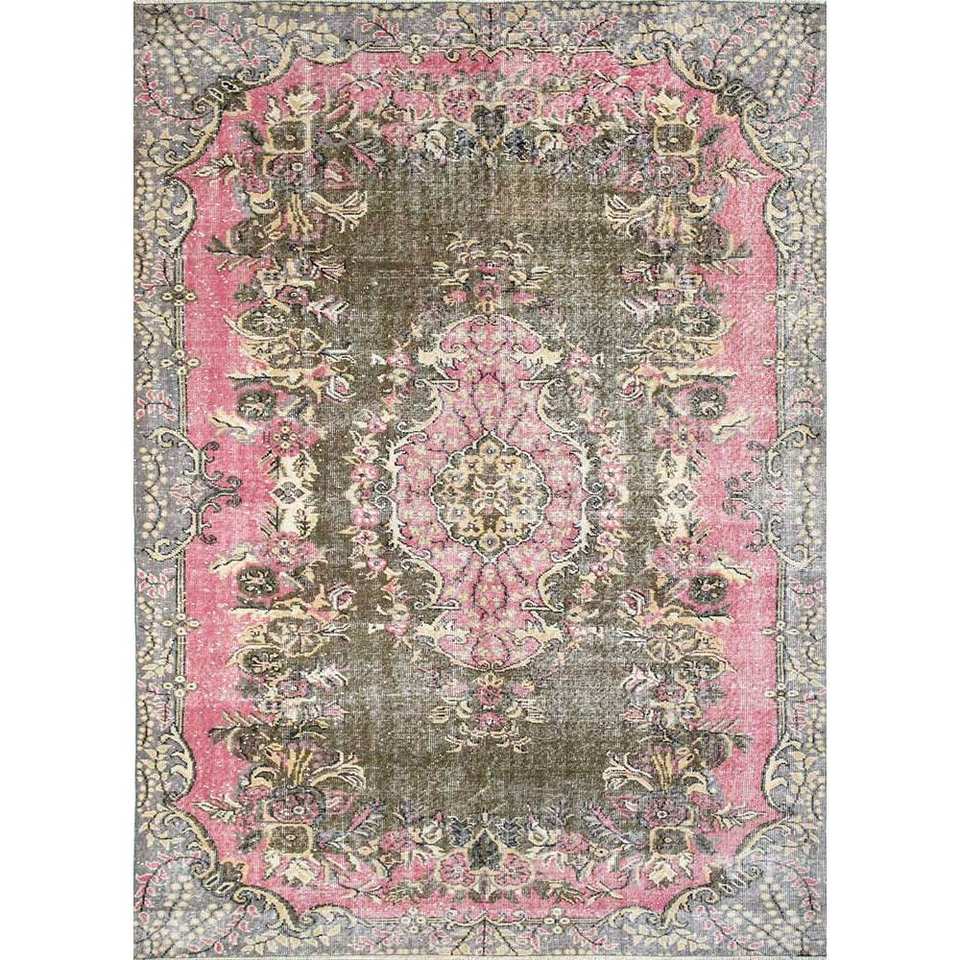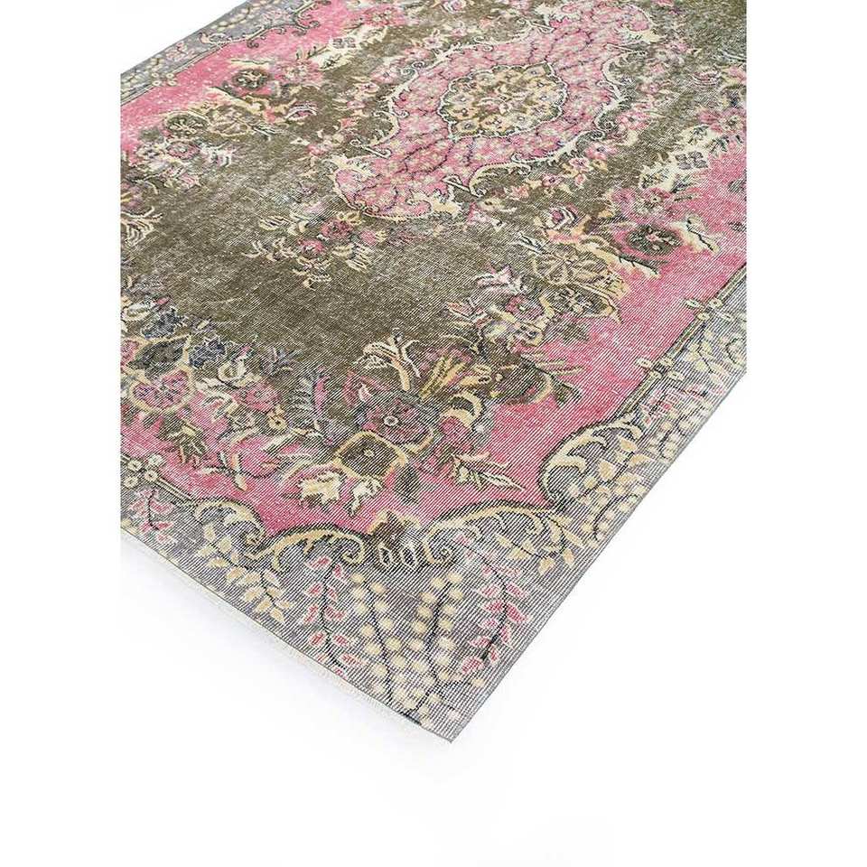 Tapis en laine verte vintage fait main, grand format, style bohème, motif rectangulaire abstrait pour entrée et couloir - Pae-1546