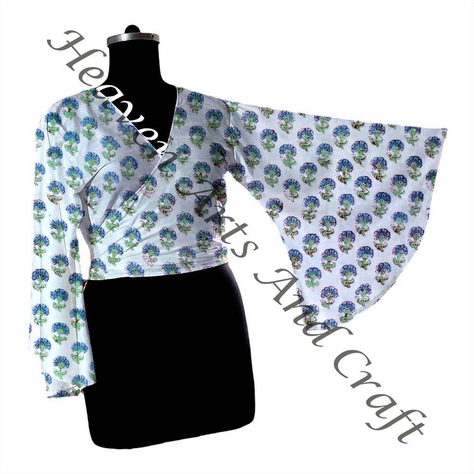 Model Number:Hand Block Print Cotton Tie Tops Bell Sleeves