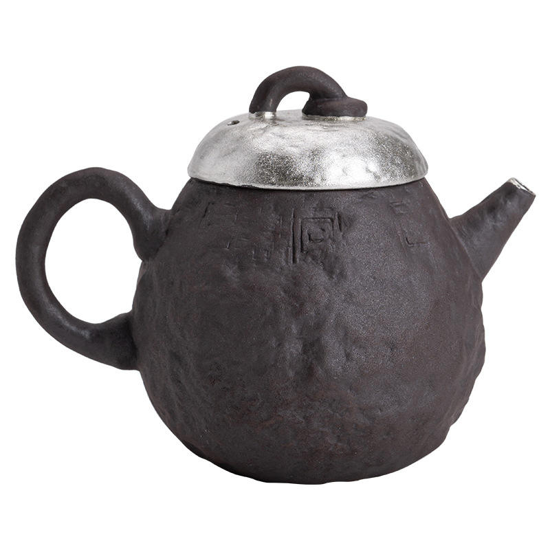 Ensemble de cérémonie du thé Kung Fu Vintage fait à la main ancien dispositif de fabrication de thé à trou de boule d'argile volcanique avec pot en céramique doré argenté