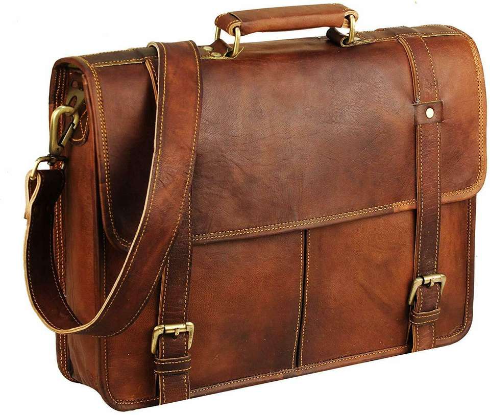 Sac à bandoulière pour ordinateur portable en cuir vintage fait à la main avec décoration de rivet unisexe deux sangles crochet et boucle de fermeture