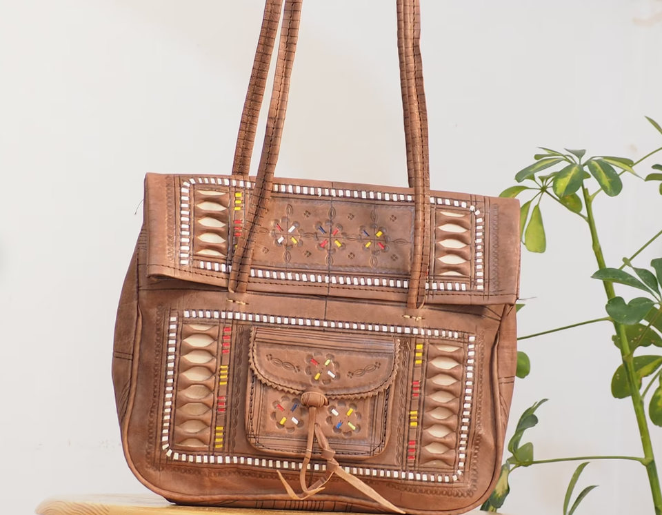 Mode:Moroccan Leather Shoulder Bag In Natural Leather