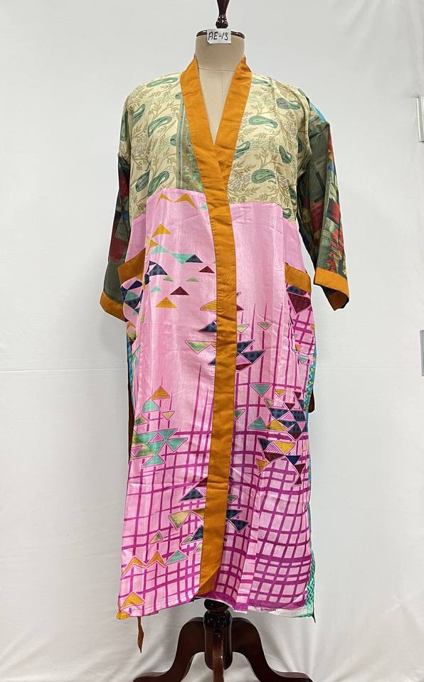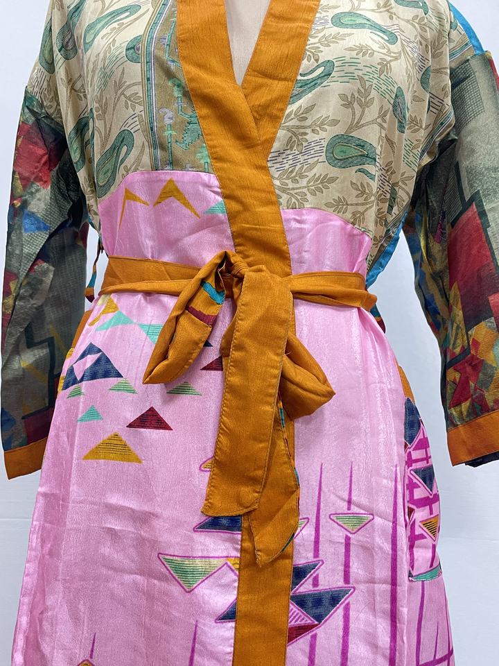 Robe de mariée kimono en soie vintage faite à la main – Respirante, séchage rapide, pour l'été, l'automne et le printemps, avec logo frontal, douce