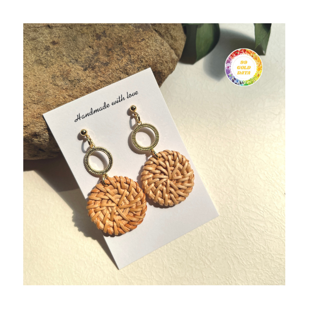 Boucles d'oreilles coquillage en rotin de style vintage fait à la main tissage de paille ronde en osier pour femmes et filles pour cadeau