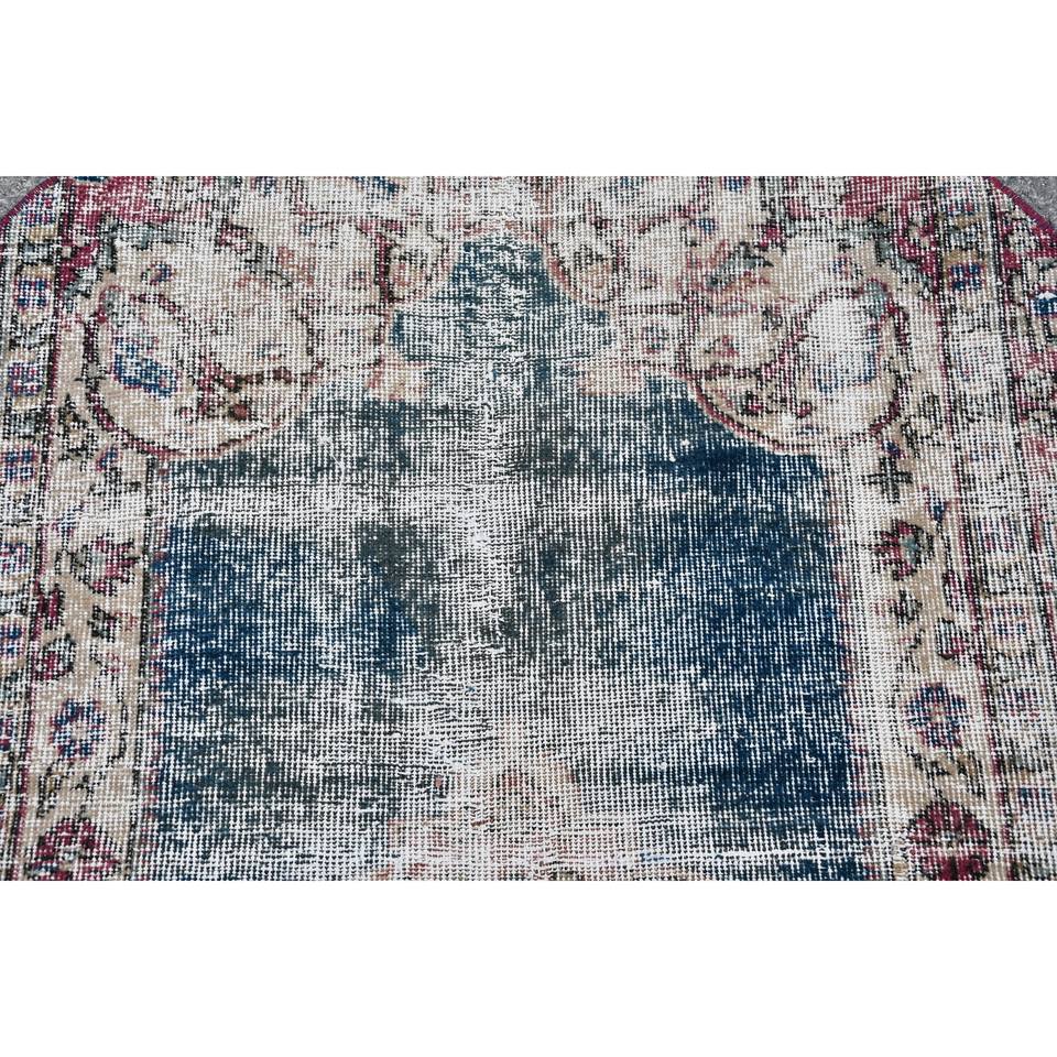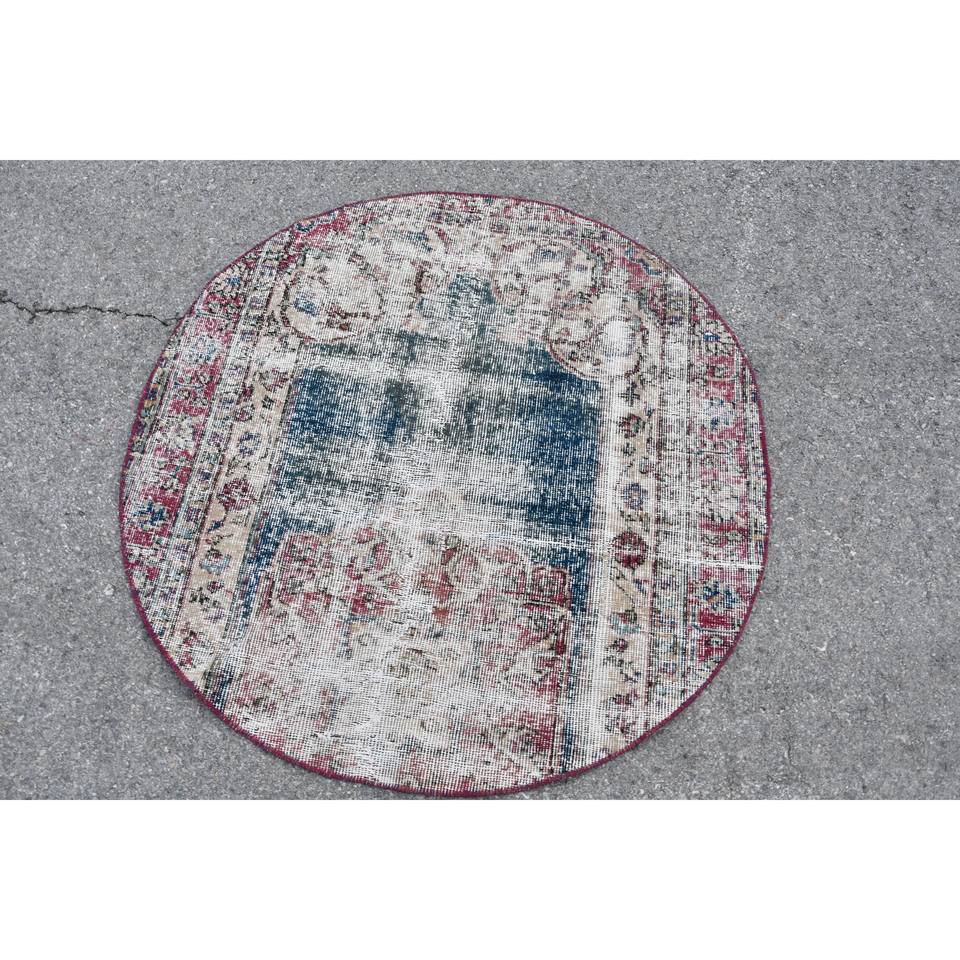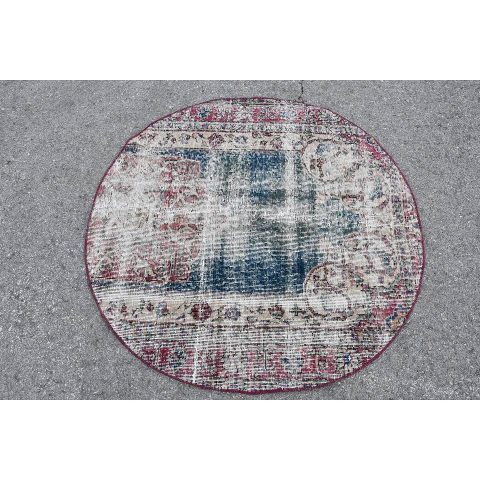 Tapis turc vintage fait à la main 3.7ft X 3.7ft bleu et rouge grande surface motif abstrait rectangulaire pour couloir de salon adolescent
