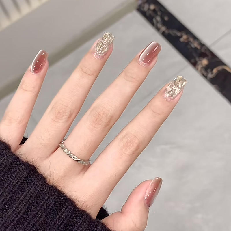 Faux ongles faits à la main Art portable hiver Style chaud Melad Caramel oeil de chat plein Dia polyvalent élégant détachable faux ongles conseils