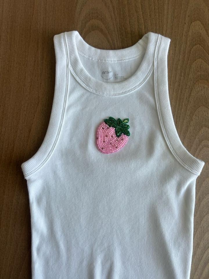 Débardeur court côtelé en coton blanc fait main avec broderie perlée et patchs étoiles de mer pour femme, idéal pour l'été décontracté