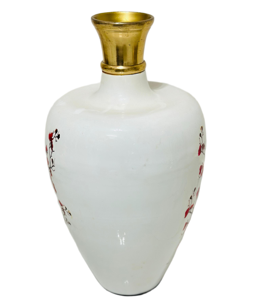 Handmade White Enamelled Iron Flower Vase Red Floral Design Luxury Floor Vase for Home Decor Living Room Restaurant Gold Coast