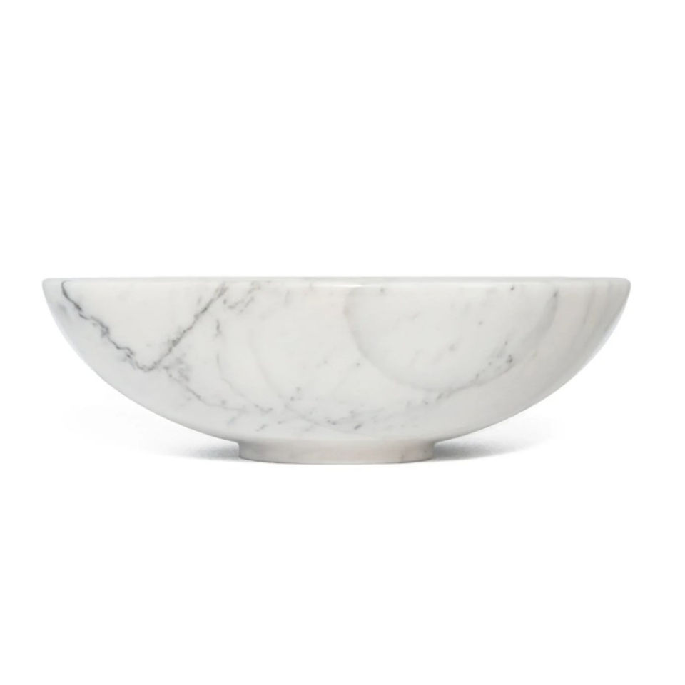 Ensemble de bols décoratifs en marbre blanc faits à la main, design de fleur plissée élégante, centre de table de service de fruits en pierre naturelle de luxe pour la maison