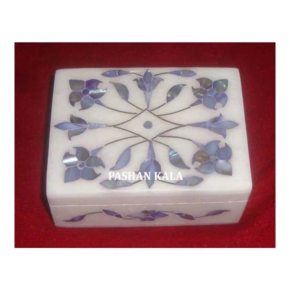 Boîte de rangement de bijoux de forme rectangulaire en nacre bleue incrustée de marbre blanc fait à la main pour le fabricant de boîtes cadeaux de festival
