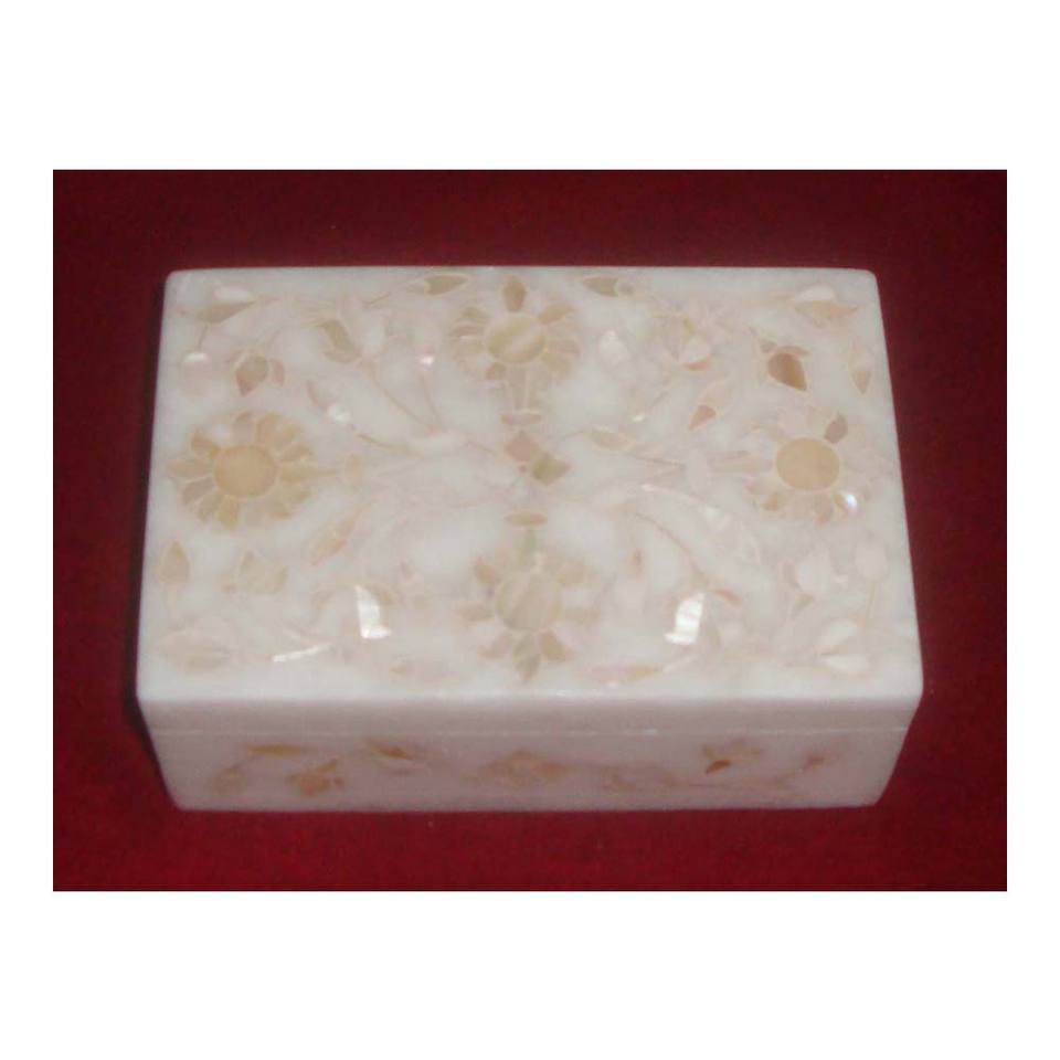 Boîte à bijoux artisanale en marbre blanc et nacre, idéale pour un cadeauNom du produit