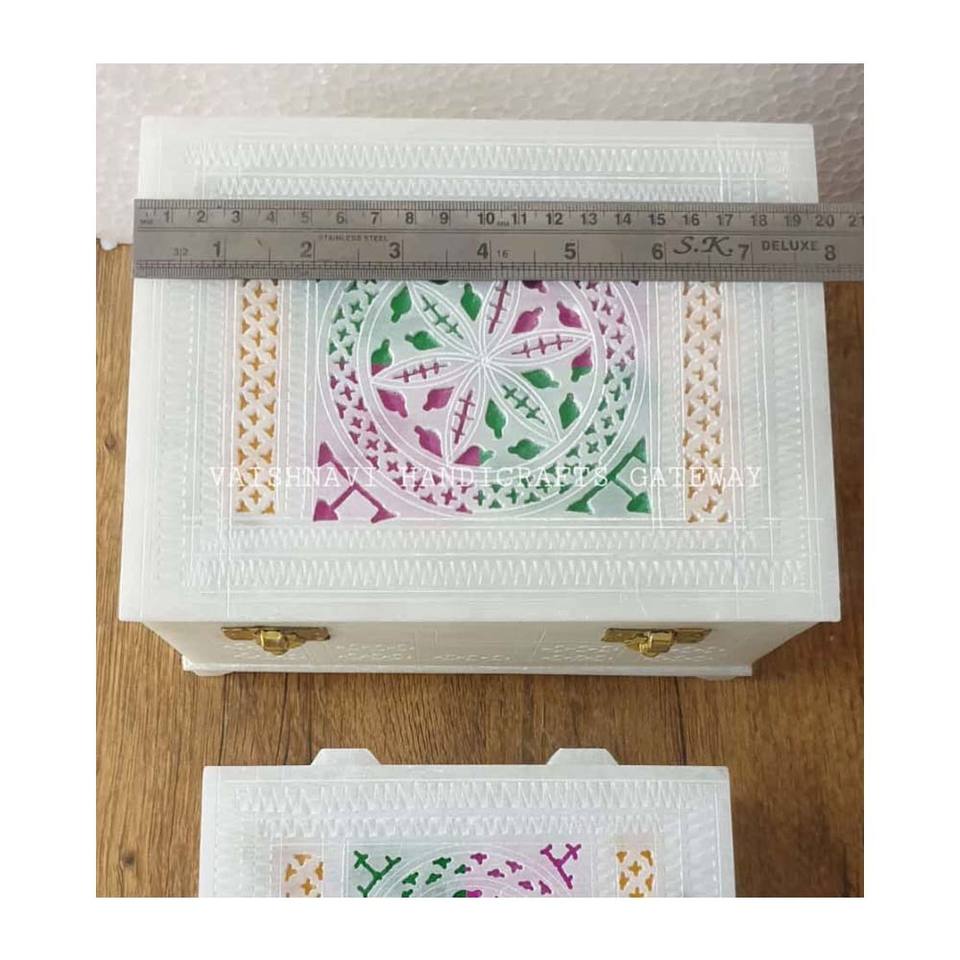 Handmade Beautiful White Marble With Unique Carving Jewelry Box