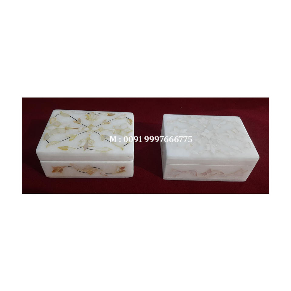 Boîtes à bijoux hexagonales en marbre blanc fait main avec incrustations de fleurs en nacre bleue et rose, pour la revente