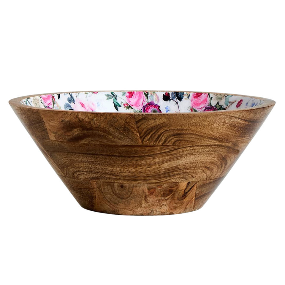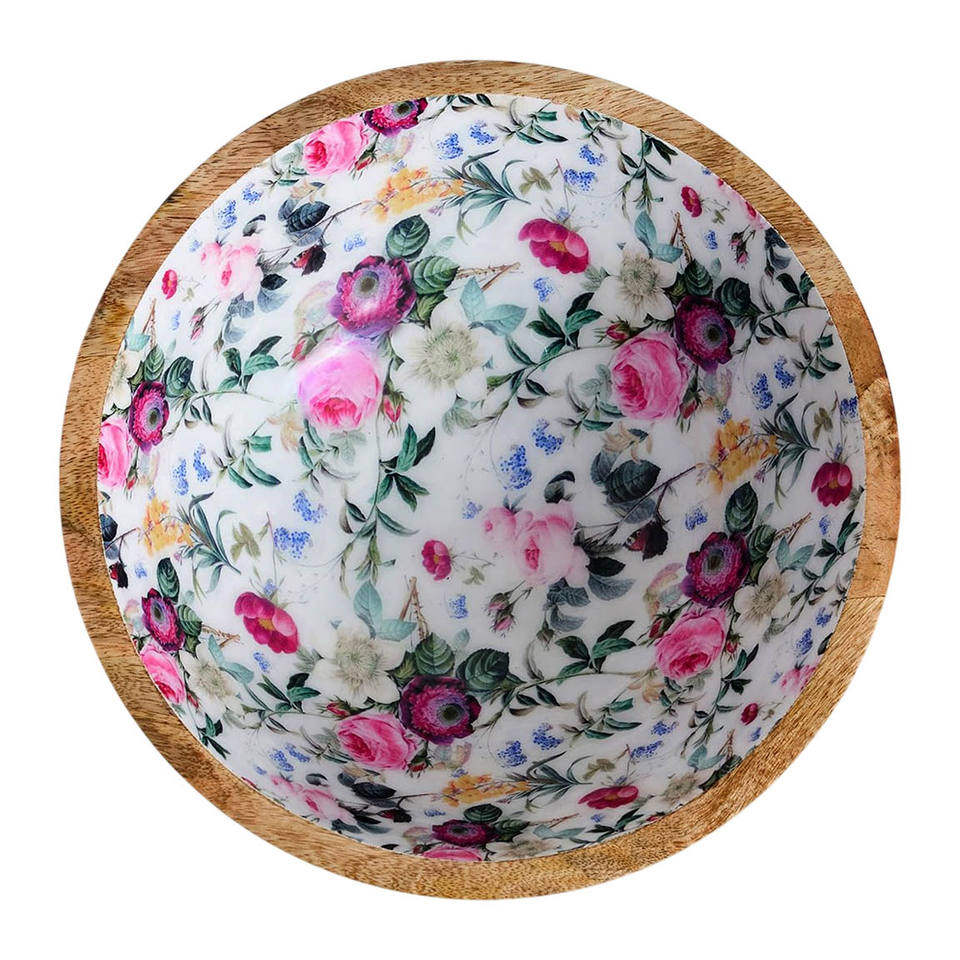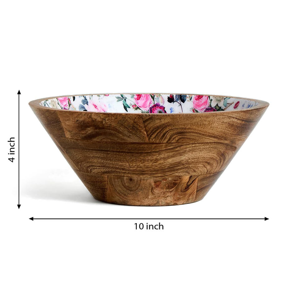 Name:Mango Wood Salad Bowl With Enamel Design