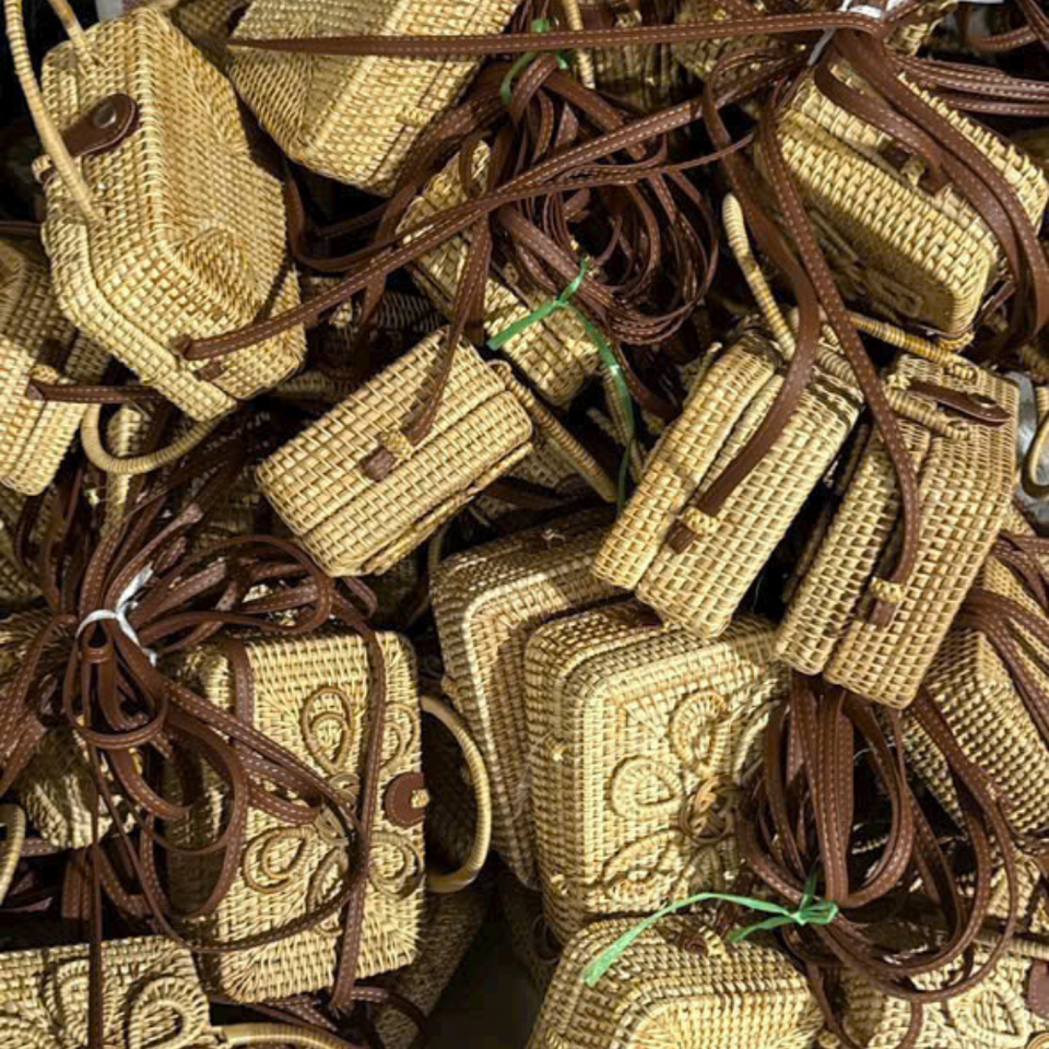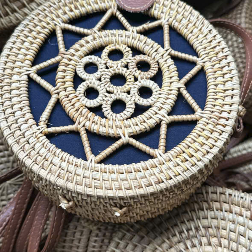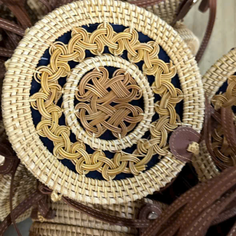 Sac à main demi-lune en rotin tressé fait main pour femme, style bohème d'été, doublure en coton naturel, portable