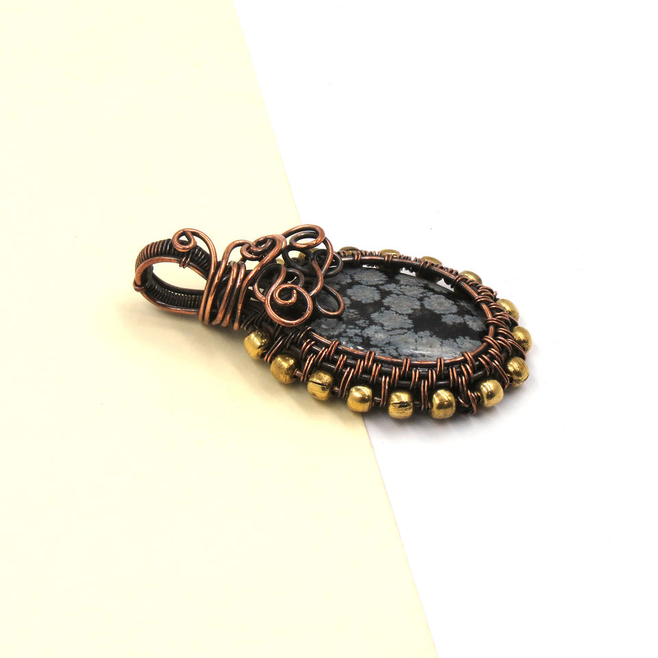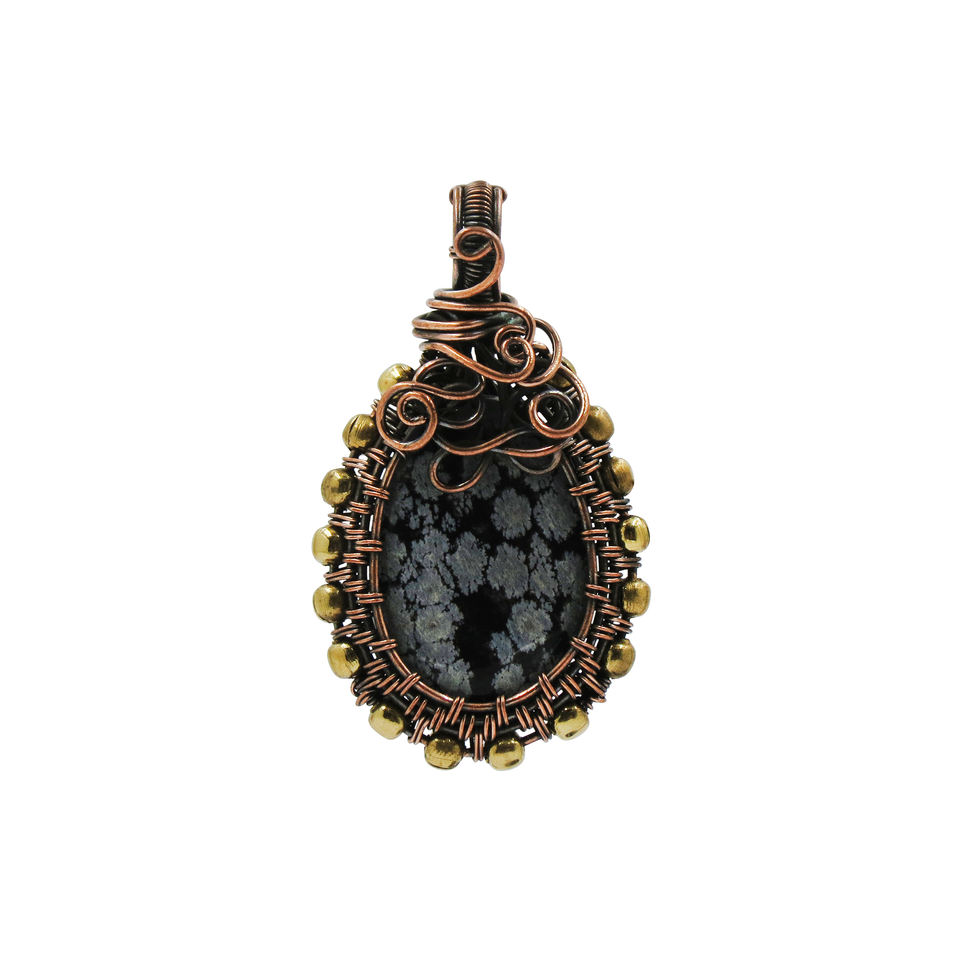 Nom ou mots:Pendentif flocon de neige en pierre gemme, fil enroulé