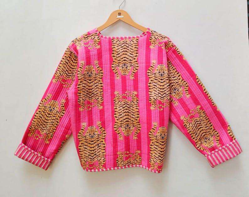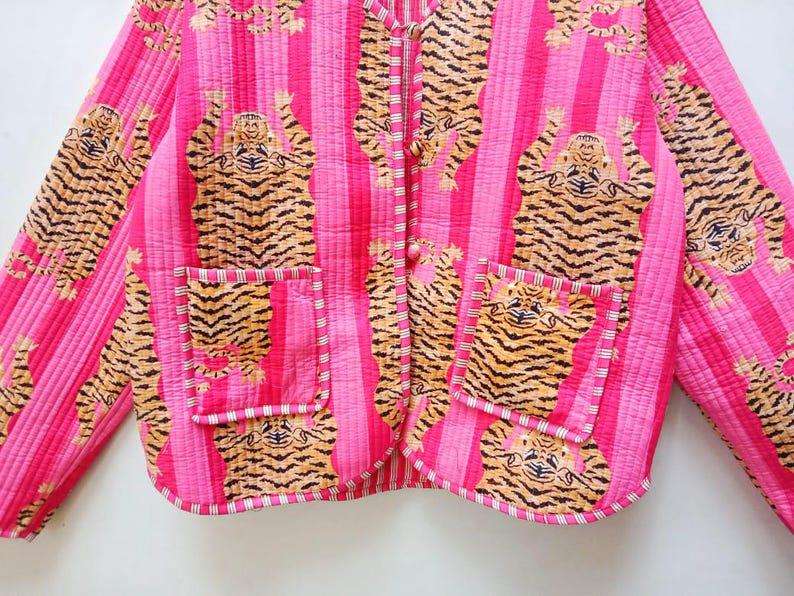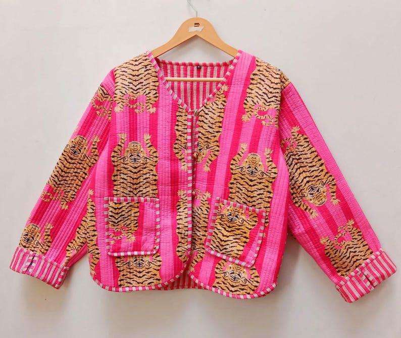 Manteau d'hiver doux et décontracté en coton matelassé de style bohème imprimé de blocs pour femmes, fermeture par boutons, technique lavée, fait à la main, vacances