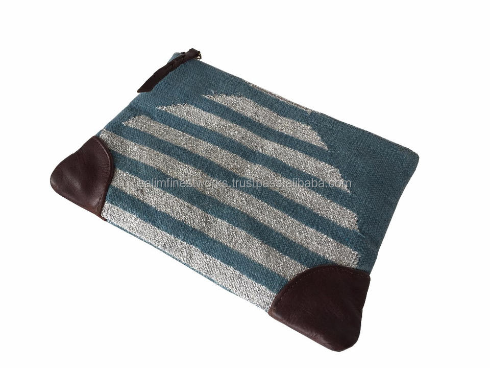 Handmade Women's Carpet Kilim Genuine Leather Wallets With Large Space For Cash Cards And Passport Zipper Clutches Handbag Purse